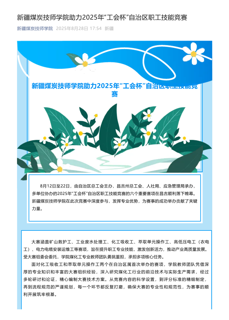 新疆煤炭技师学院助力2025年“工会杯”自治区职工技能竞赛