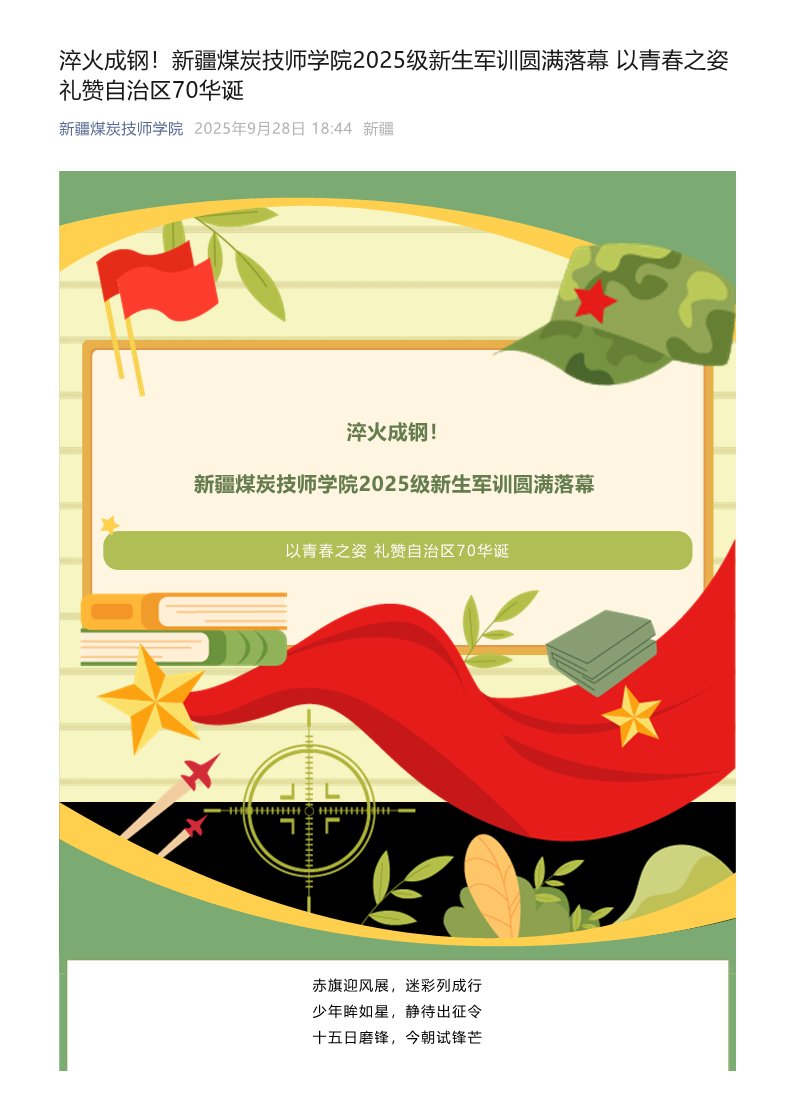 淬火成钢!新疆煤炭技师学院2025级新生军训圆满落幕 以青春之姿礼赞自治区70华诞