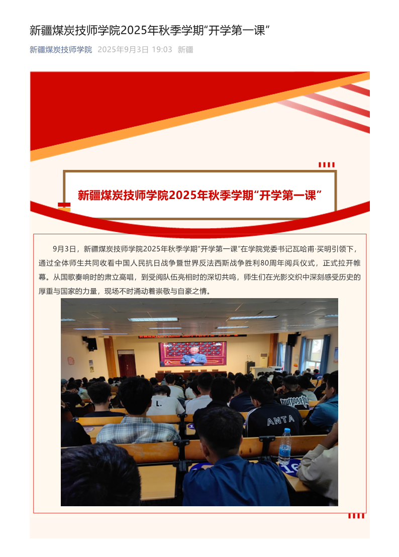 新疆煤炭技师学院2025年秋季学期“开学第一课”