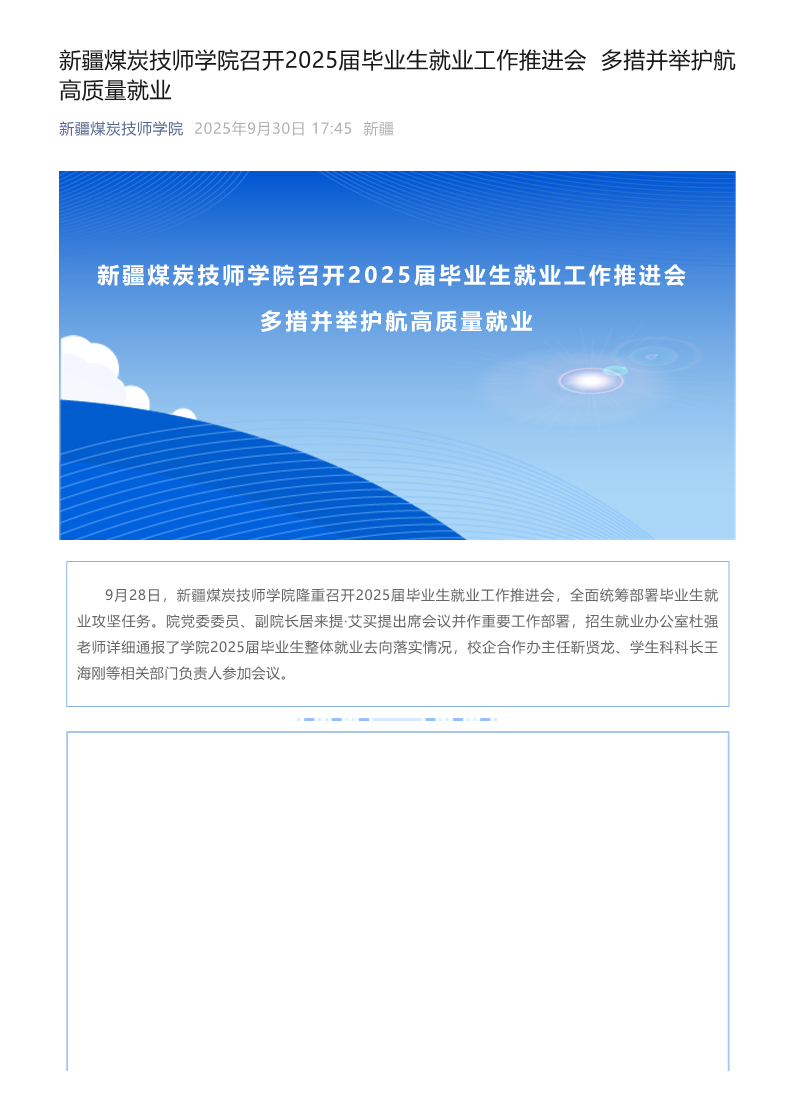 新疆煤炭技师学院召开2025届毕业生就业工作推进会 多措并举护航高质量就业