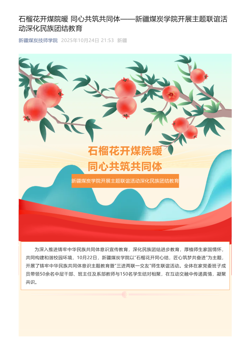 石榴花开煤院暖 同心共筑共同体——新疆煤炭学院开展主题联谊活动深化民族团结教育