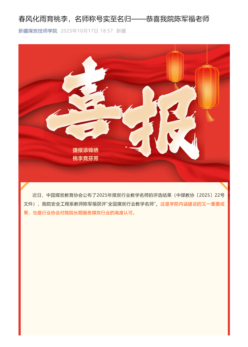 春风化雨育桃李,名师称号实至名归——恭喜我院陈军福老师