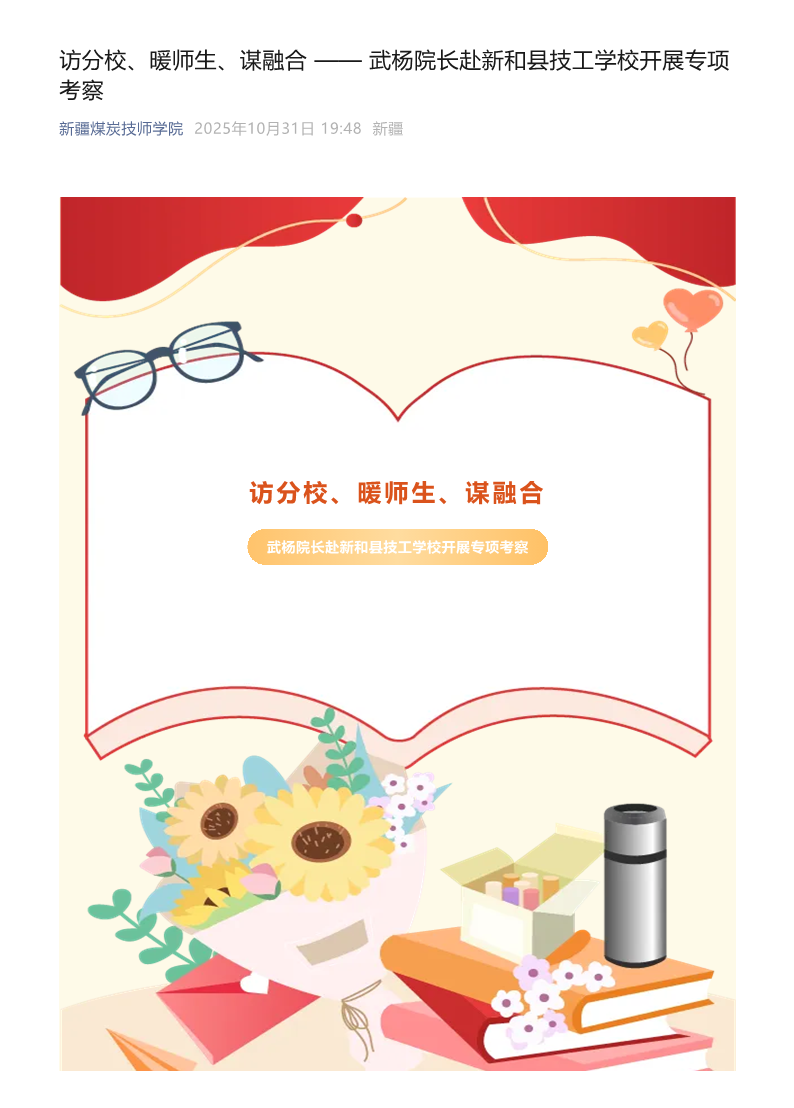 访分校、暖师生、谋融合 —— 武杨院长赴新和县技工学校开展专项考察