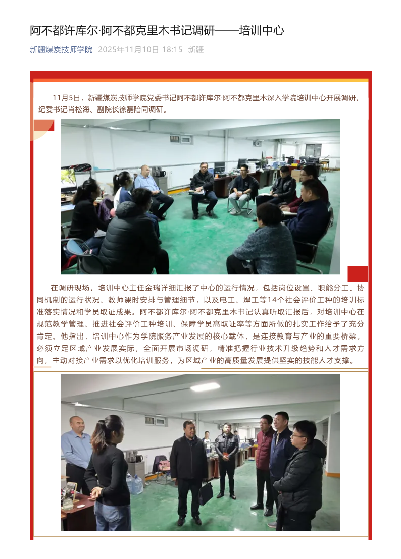 阿不都许库尔·阿不都克里木书记调研——培训中心